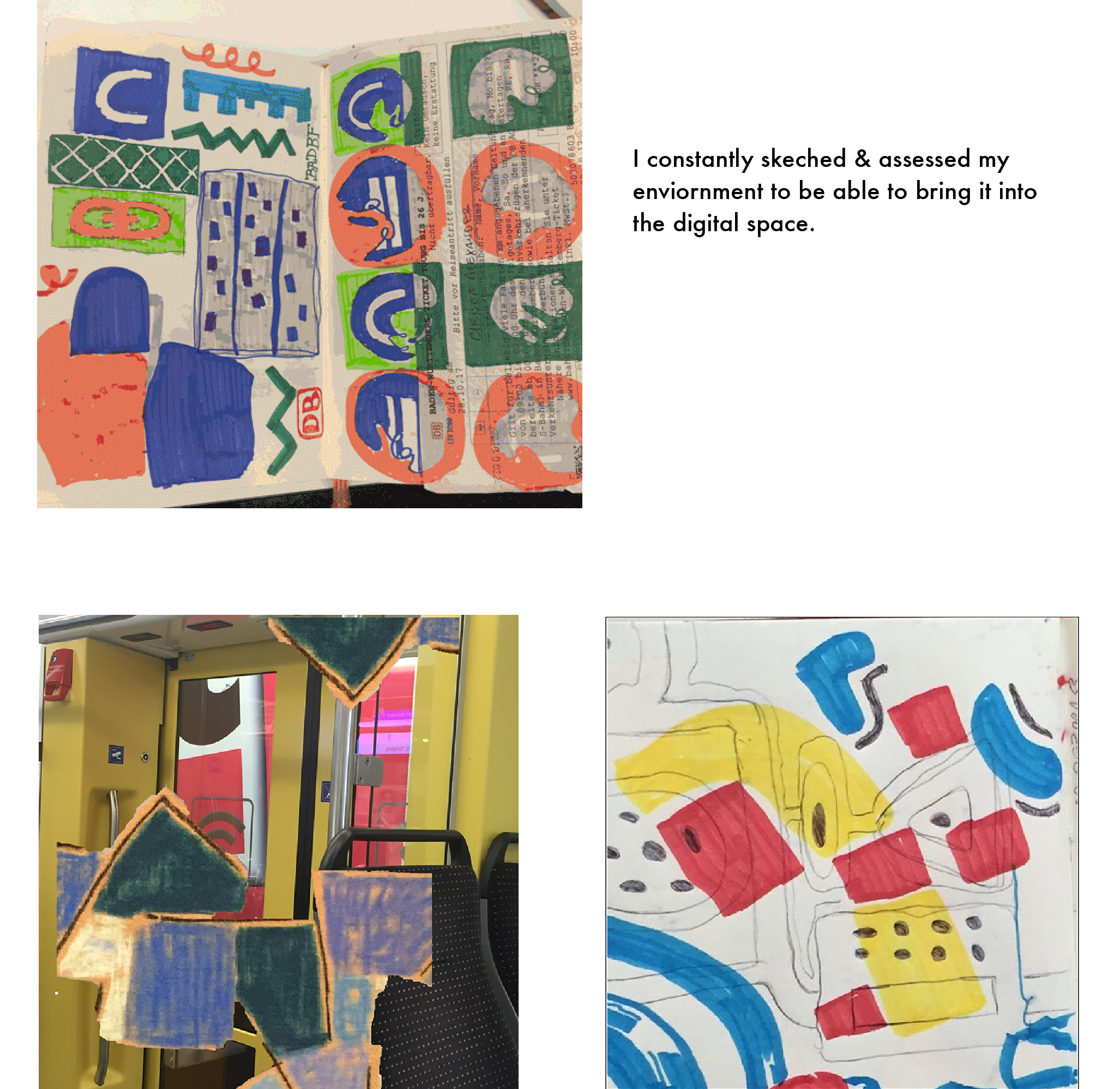 This is a project I worked on while living in Switzerland and traveling around to France, Germany and Italy. I think what I learned most was how to adapt to a new environment with my work and my livelihood. What I also learned was how to live in a German speaking country and find my way around new spaces whilst looking for large amounts of possible inspiration. Thus, I created a system that allowed me to freely design and experience new places and people and accurately depict them in these patterns.